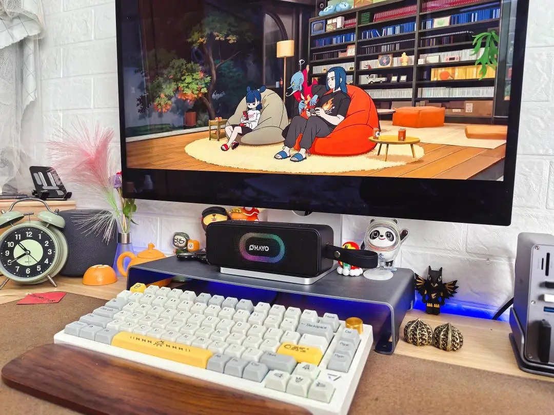 如今已是年底了,接下来工作出差会越来越多。出差必备笔记本和Switch,这些设备自带扬声器,但是也就是听个响,甚至笔记本我觉得都不够响,不管是看电影还是玩游戏,感觉都差了点意思。所以这次我入手了OHAYO雷登 Desk Tune S11便携蓝牙音箱(以下简称雷登S11),这是一款配备有钕磁三喇叭的2.1声道的音箱,功率高达45W,内置5200mAh大容量锂电池,续航持久,最主要的是这款音箱1680万色RGB律动灯效。